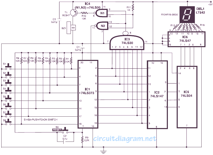 The circuit provided right here allows up to eight participants with each one assigned a unique number (1 to 8). The display will show the number of the electronic jam circuit diagram.