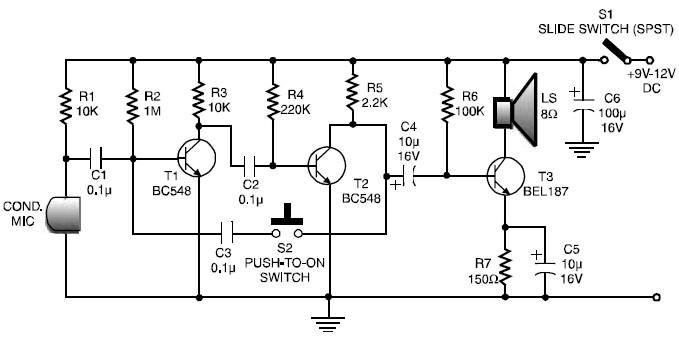 This is a low-cost and simple intercom circuit design. Some intercom circuits is build by applying integrated circuits. The circuit described right here utilizes 3 certainly transistors which easy to find on the electronic store. Even a newbie can assemble it on a piece of veroboard without difficulty.